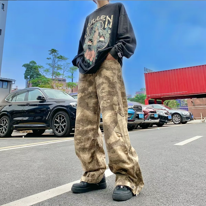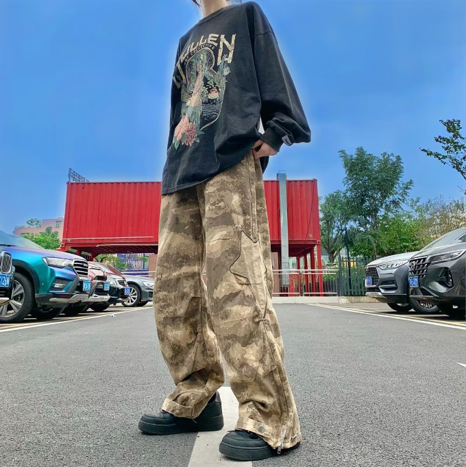 Retro star patch camouflage pants are designed for men who want bold street style without sacrificing comfort or versatility. These pants combine a classic camouflage pattern with eye-catching retro star patches, creating a standout look that fits perfectly into modern hip hop and streetwear trends. The loose straight cut offers freedom of movement while maintaining a clean, fashionable silhouette that works for everyday wear.